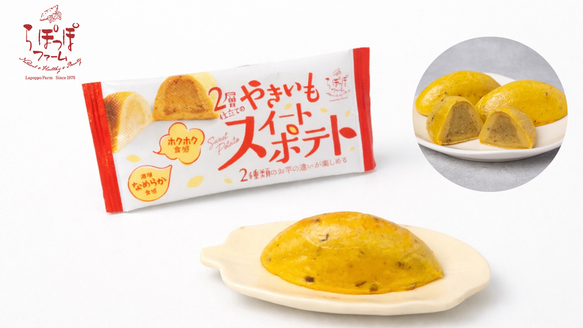 らぽっぽファームの新商品!「2層仕立てのやきいもスイートポテト」を3/24より全国のファミリーマートにて発売します!